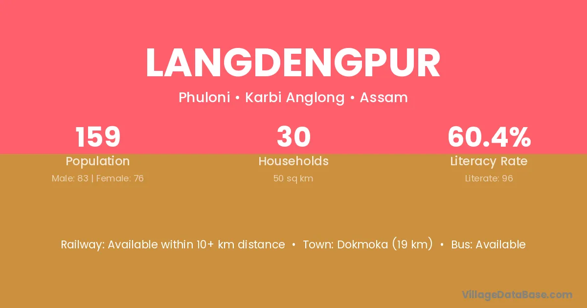 Dokmoka (19 km) is the nearest town to Langdengpur village for major economic activities and is located approximately 19 km away.