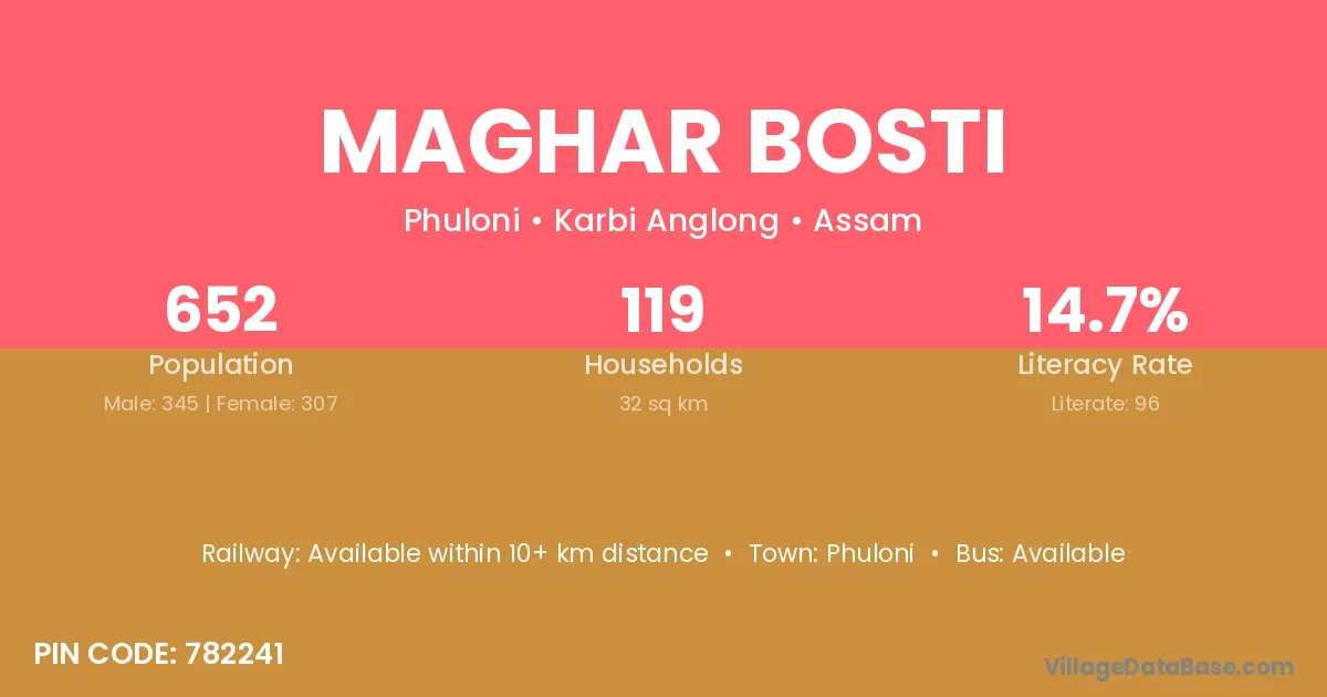 Phuloni is the nearest town to Maghar Bosti village for major economic activities