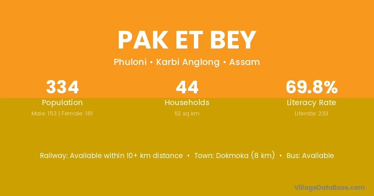 Pak Et Bey village is located in the Phuloni Subdivision of the Karbi Anglong district in Assam .