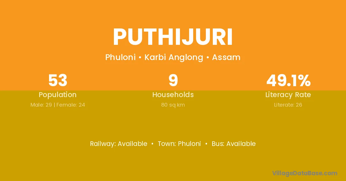 Puthijuri village has a total population of 53 people, of which 29 are males and 24 are females.