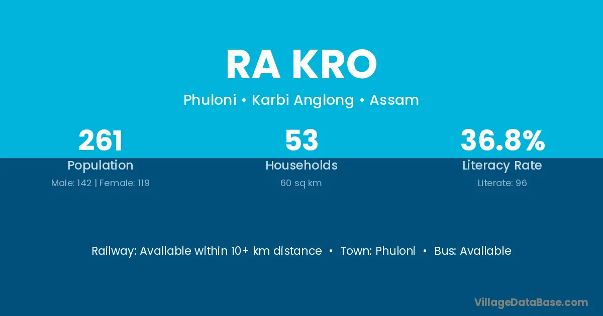 Ra Kro village is located in the Phuloni Subdivision of the Karbi Anglong district in Assam .