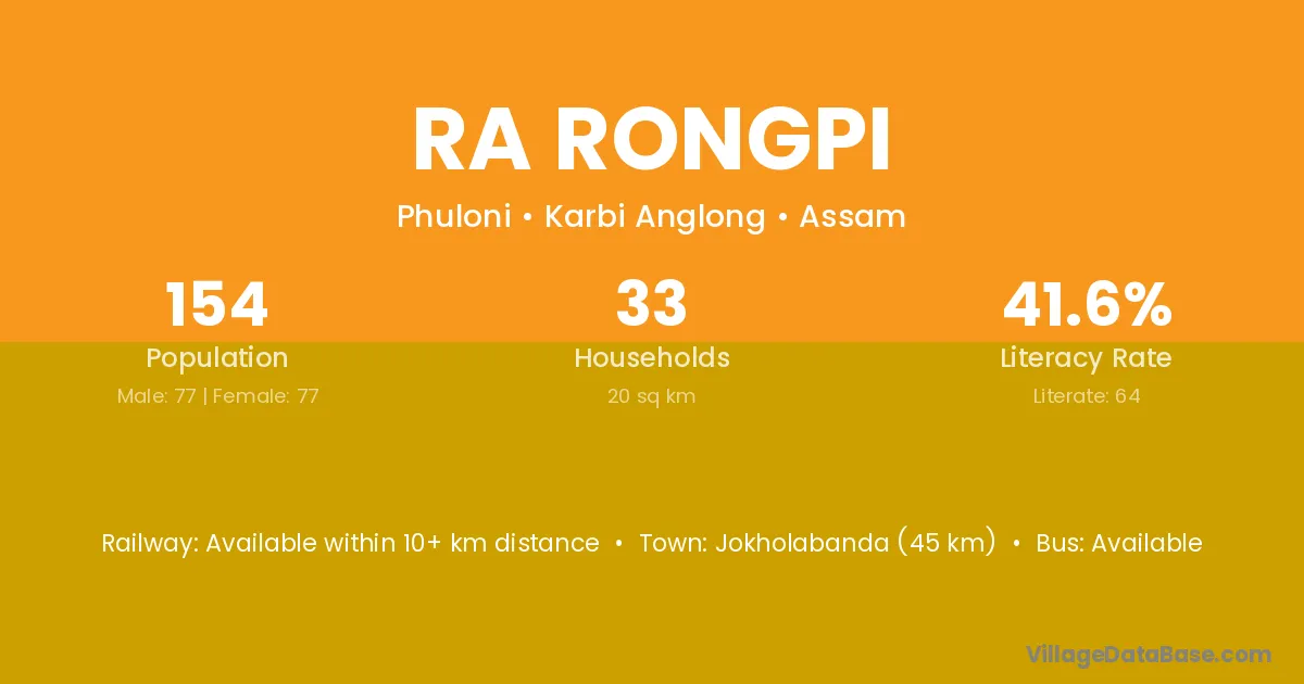 Ra Rongpi village has a total population of 154 people, of which 77 are males and 77 are females.
