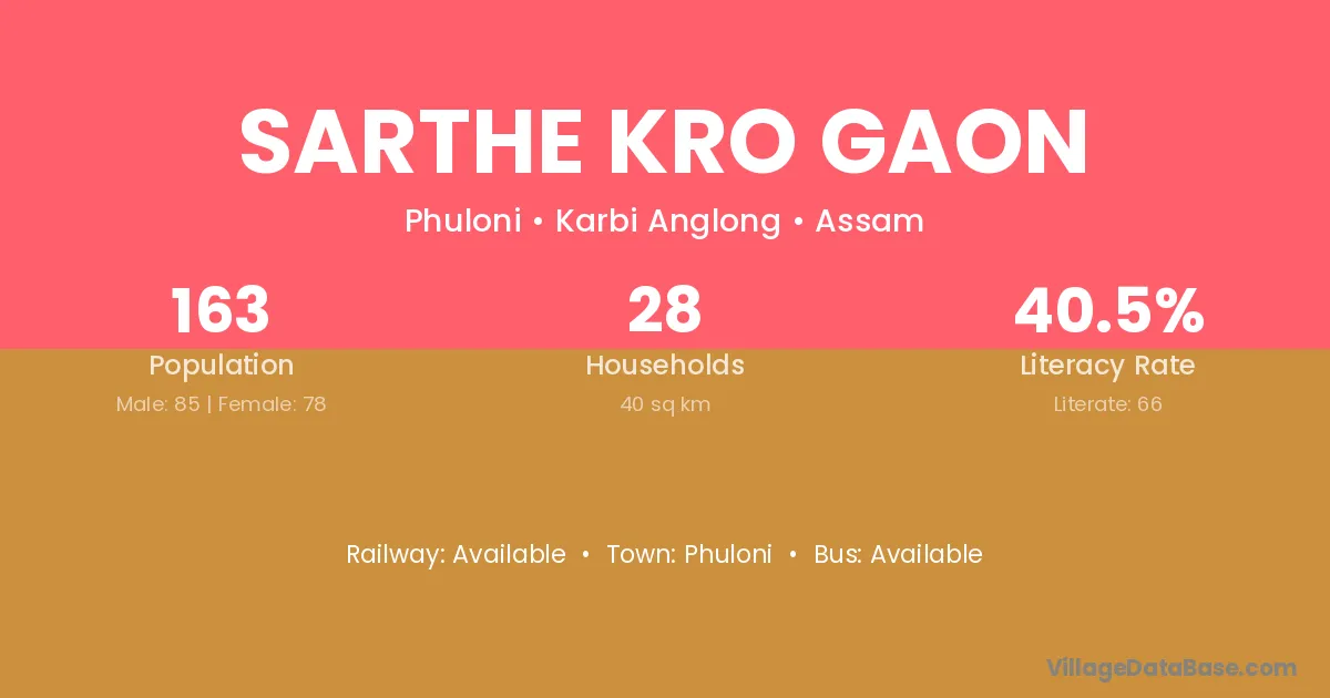 Sarthe Kro Gaon village is located in the Phuloni Subdivision of the Karbi Anglong district in Assam .
