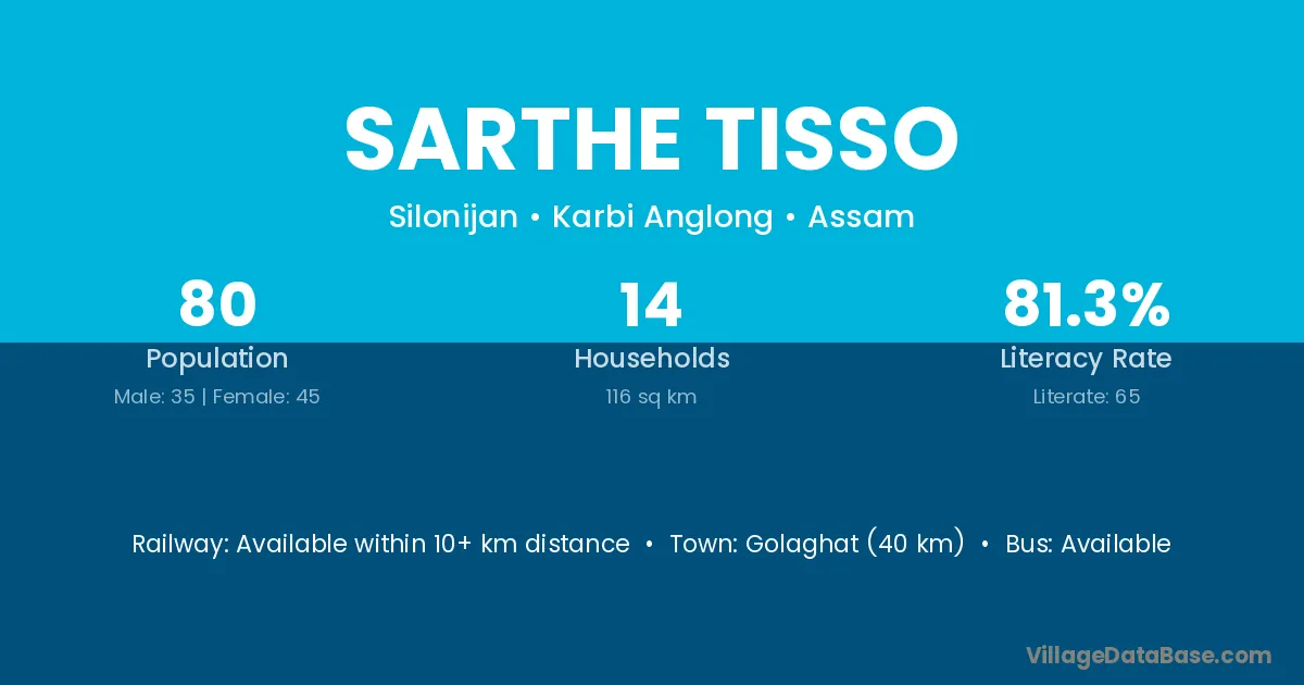 Phuloni is the nearest town to Sarthe Tisso village for major economic activities