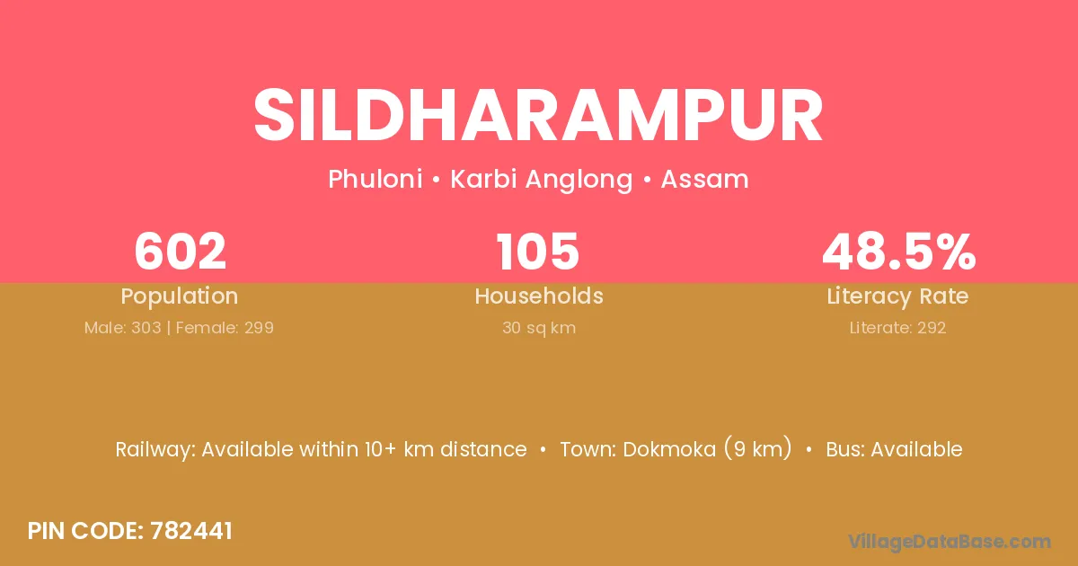 Dokmoka (9 km) is the nearest town to Sildharampur village for major economic activities and is located approximately 9 km away.