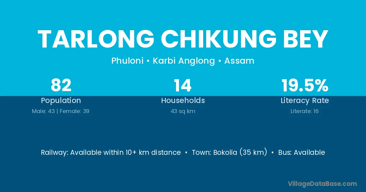 Tarlong Chikung Bey village has a total population of 82 people, of which 43 are males and 39 are females.