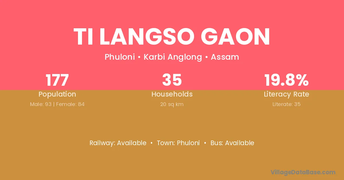 Ti Langso Gaon village has a total population of 177 people, of which 93 are males and 84 are females.