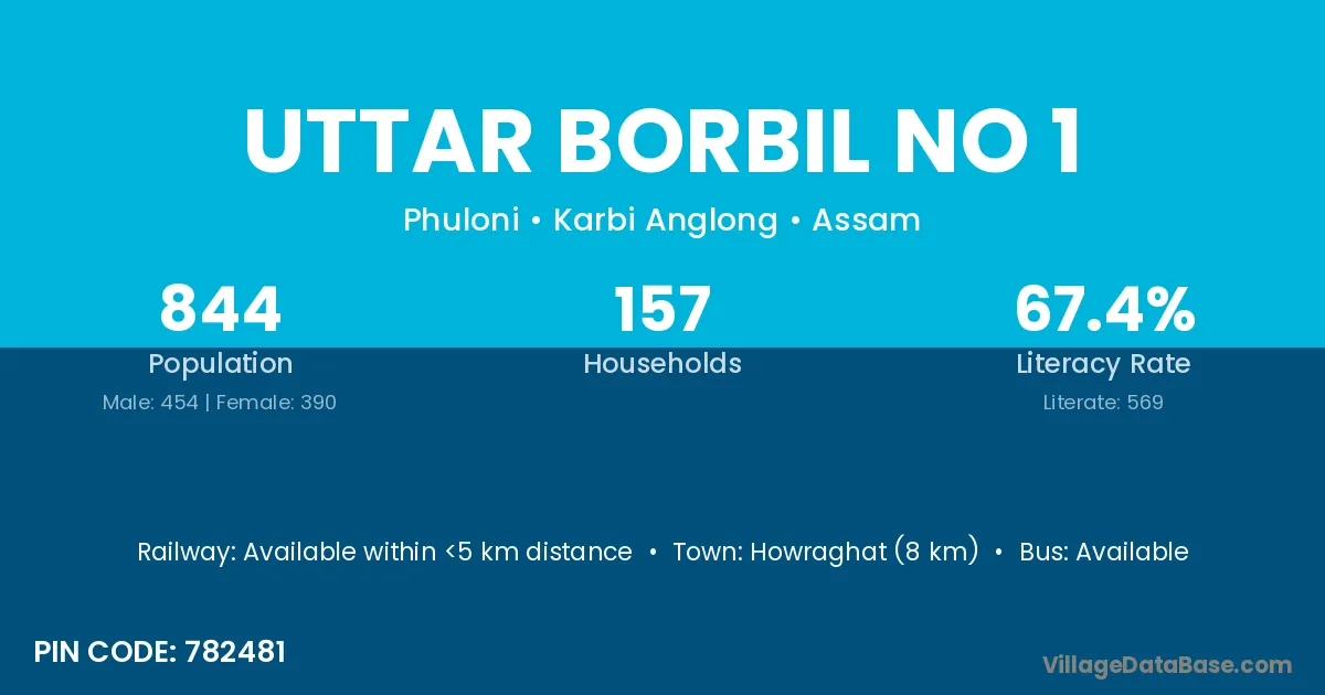 Howraghat (8 km) is the nearest town to Uttar Borbil No 1 village for major economic activities and is located approximately 8 km away.