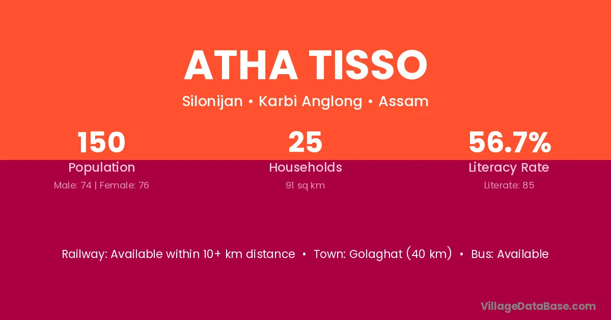 Golaghat (40 km) is the nearest town to Atha Tisso village for major economic activities and is located approximately 40 km away.