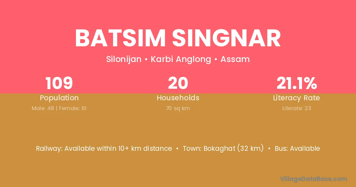 Batsim Singnar village is located in the Silonijan Subdivision of the Karbi Anglong district in Assam .