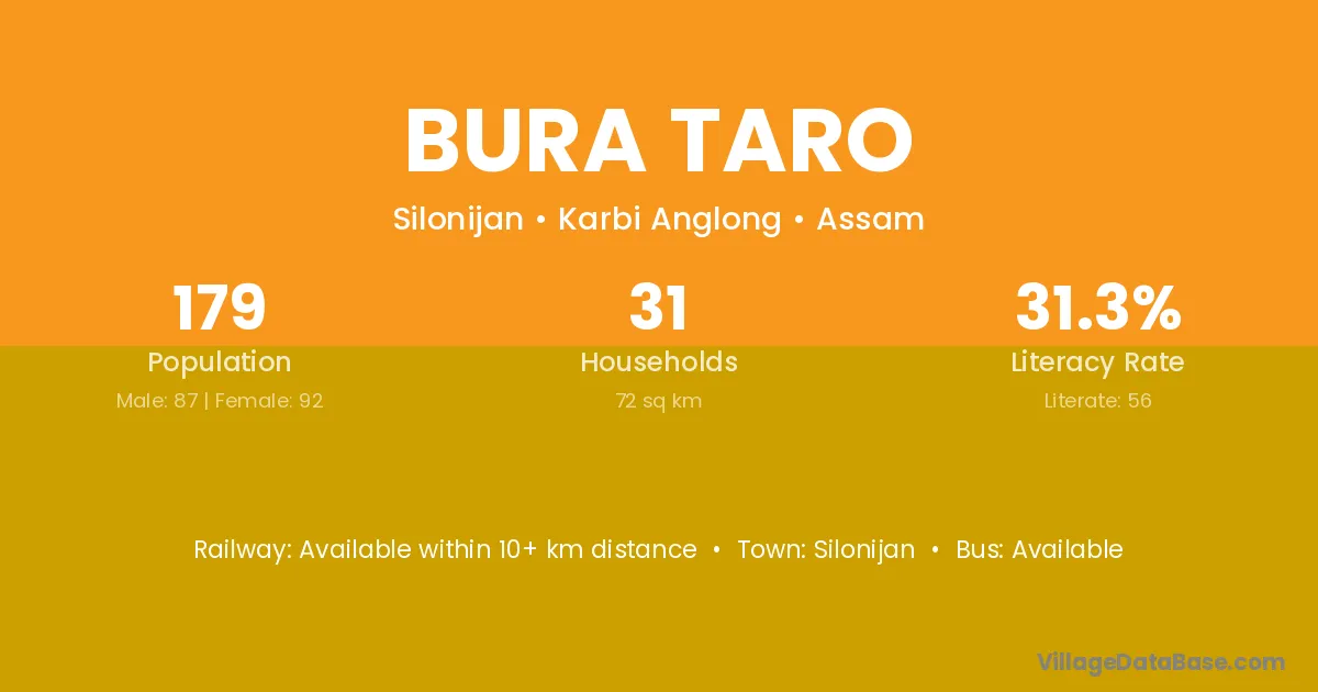 Bura Taro village is located in the Silonijan Subdivision of the Karbi Anglong district in Assam .