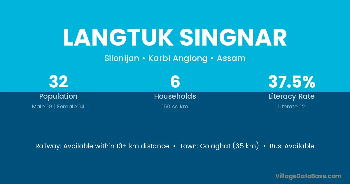 Golaghat (35 km) is the nearest town to Langtuk Singnar village for major economic activities and is located approximately 35 km away.