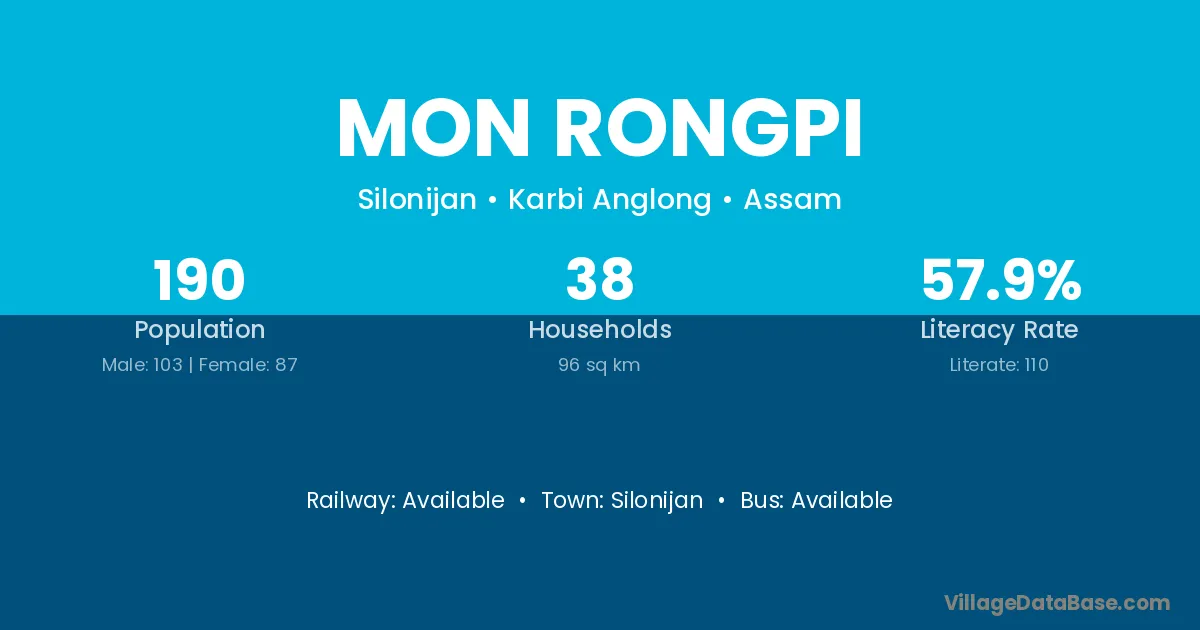 Mon Rongpi village has a total population of 190 people, of which 103 are males and 87 are females.