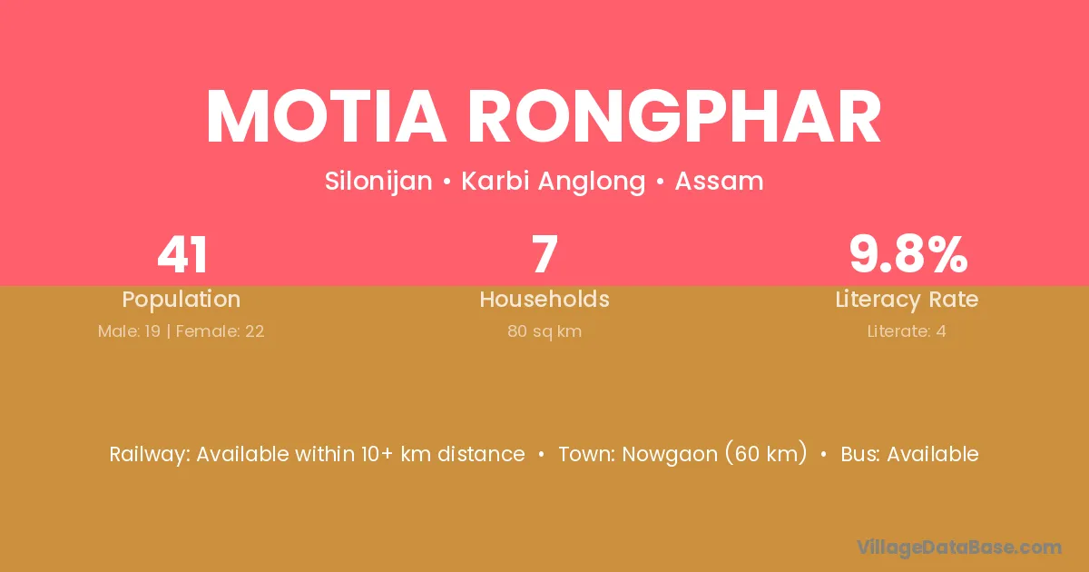 Motia Rongphar village is located in the Silonijan Subdivision of the Karbi Anglong district in Assam .