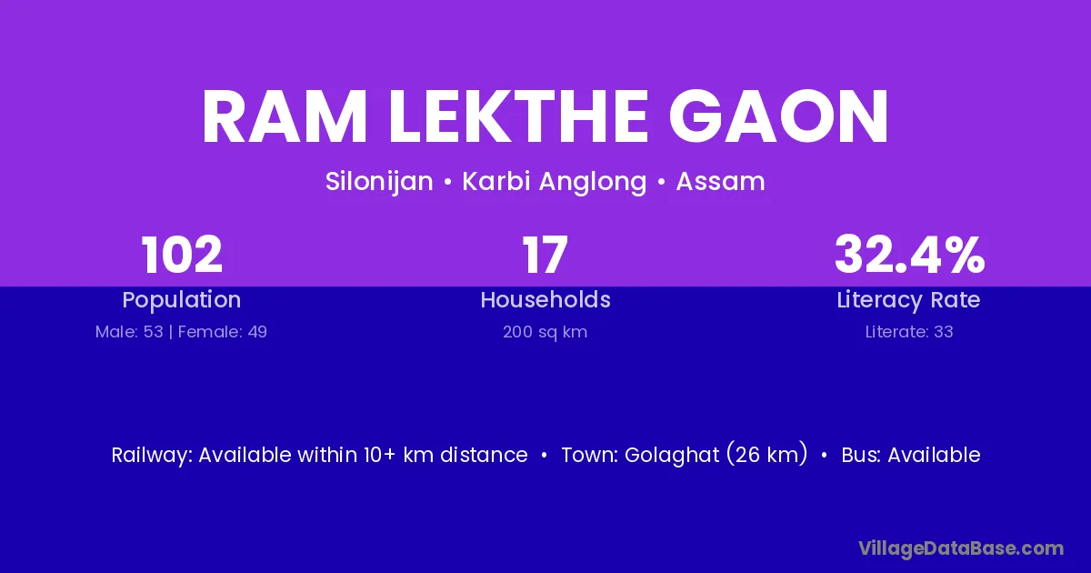 Ram Lekthe Gaon village has a total population of 102 people, of which 53 are males and 49 are females.