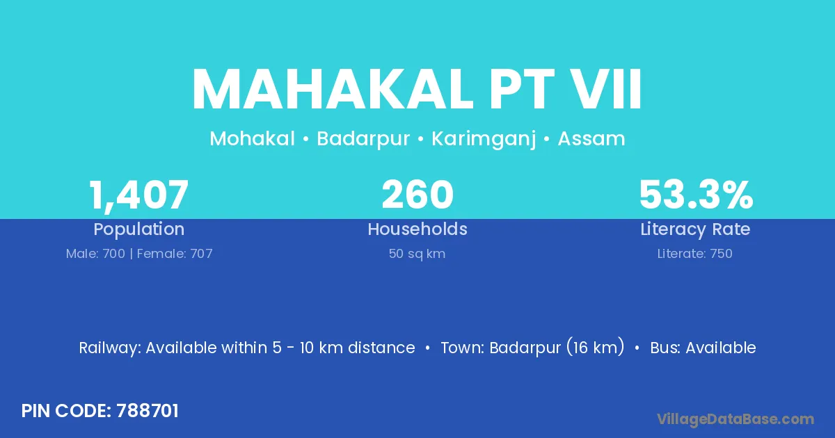 Badarpur (16 km) is the nearest town to Mahakal Pt Vii village for major economic activities and is located approximately 16 km away.