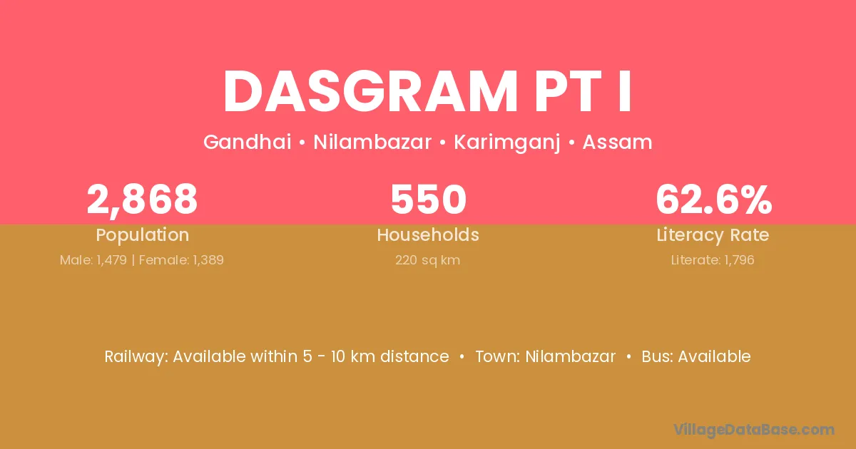 Dasgram Pt I village has a total population of 2,868 people, of which 1,479 are males and 1,389 are females.