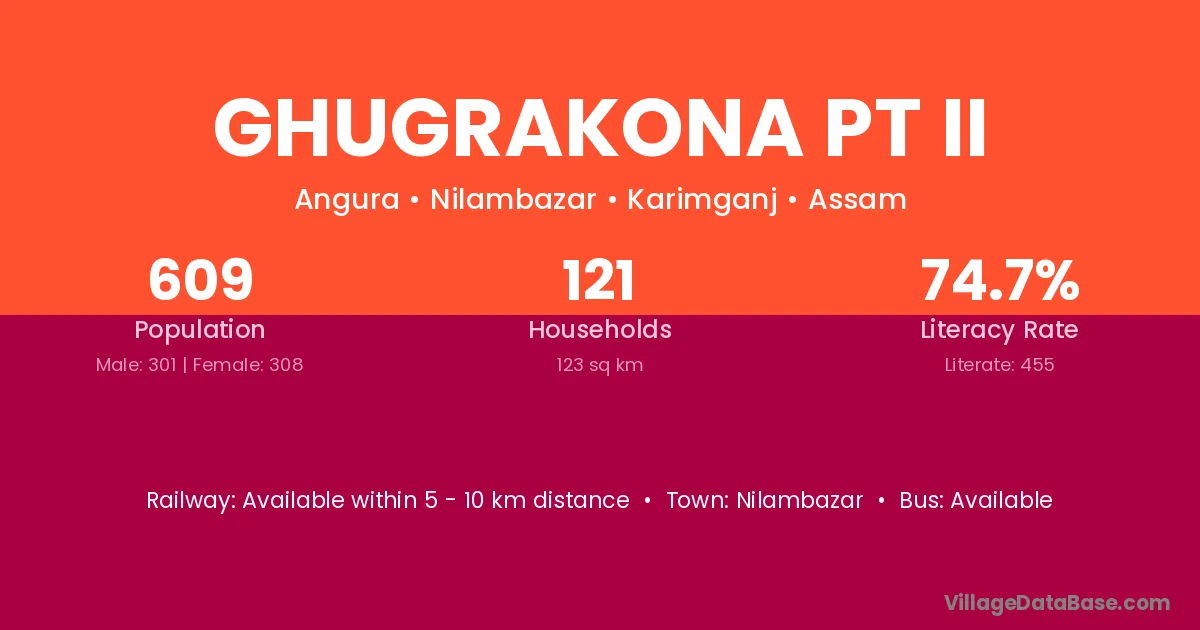 Ghugrakona Pt Ii village has a total population of 609 people, of which 301 are males and 308 are females.