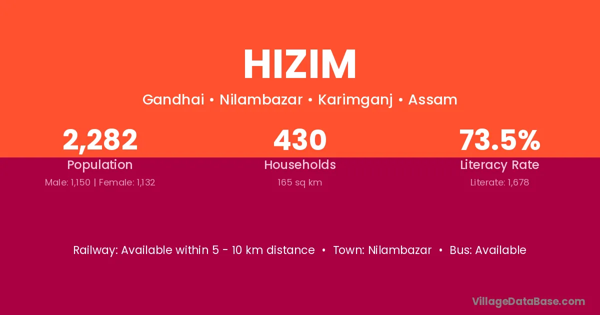 Hizim village is located in the Nilambazar Subdivision of the Karimganj district in Assam .