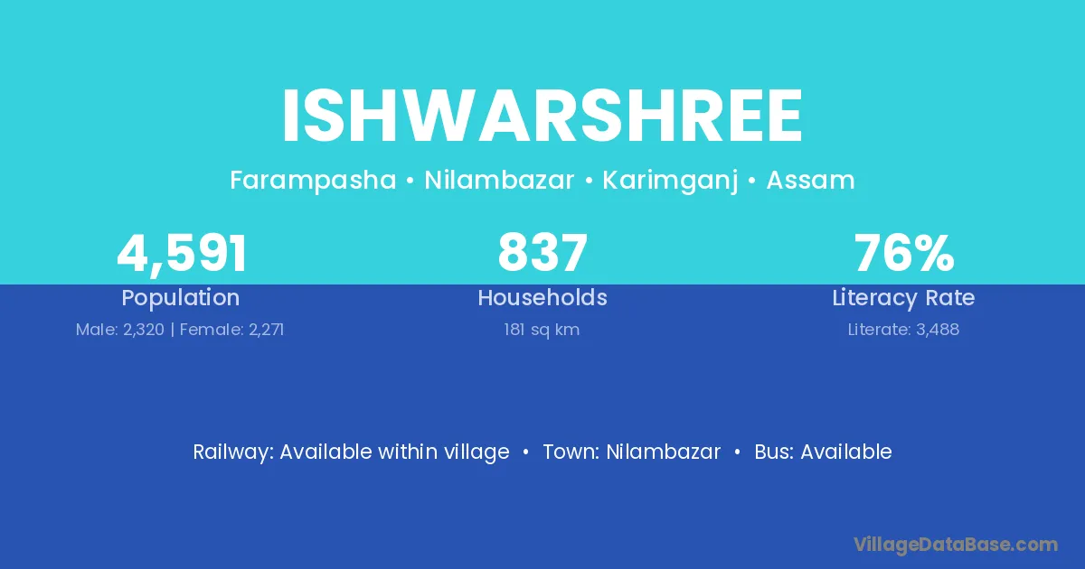 Ishwarshree village is located in the Nilambazar Subdivision of the Karimganj district in Assam .