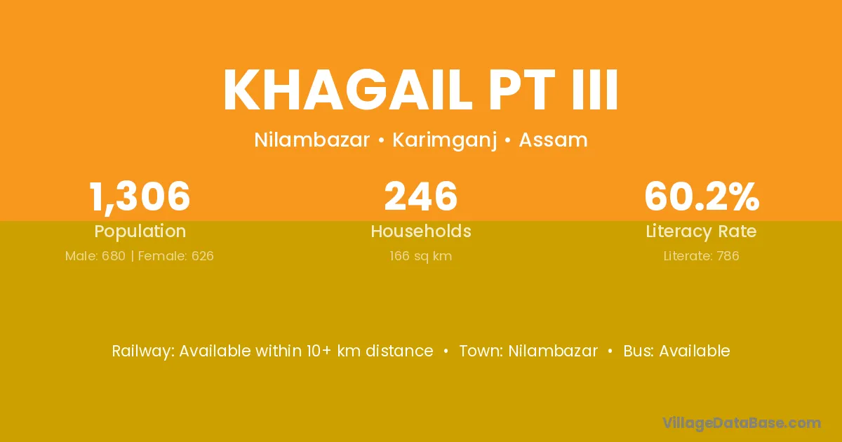 Khagail Pt Iii village has a total population of 1,306 people, of which 680 are males and 626 are females.