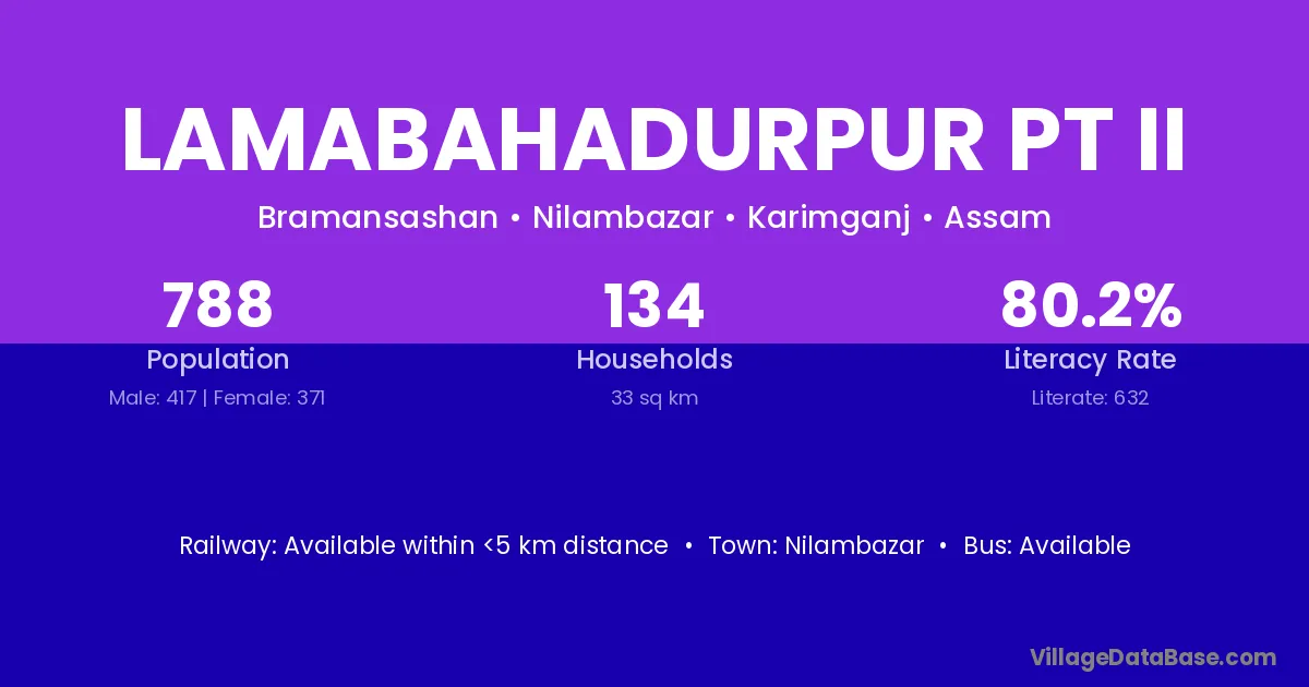 Lamabahadurpur Pt Ii village has a total population of 788 people, of which 417 are males and 371 are females.