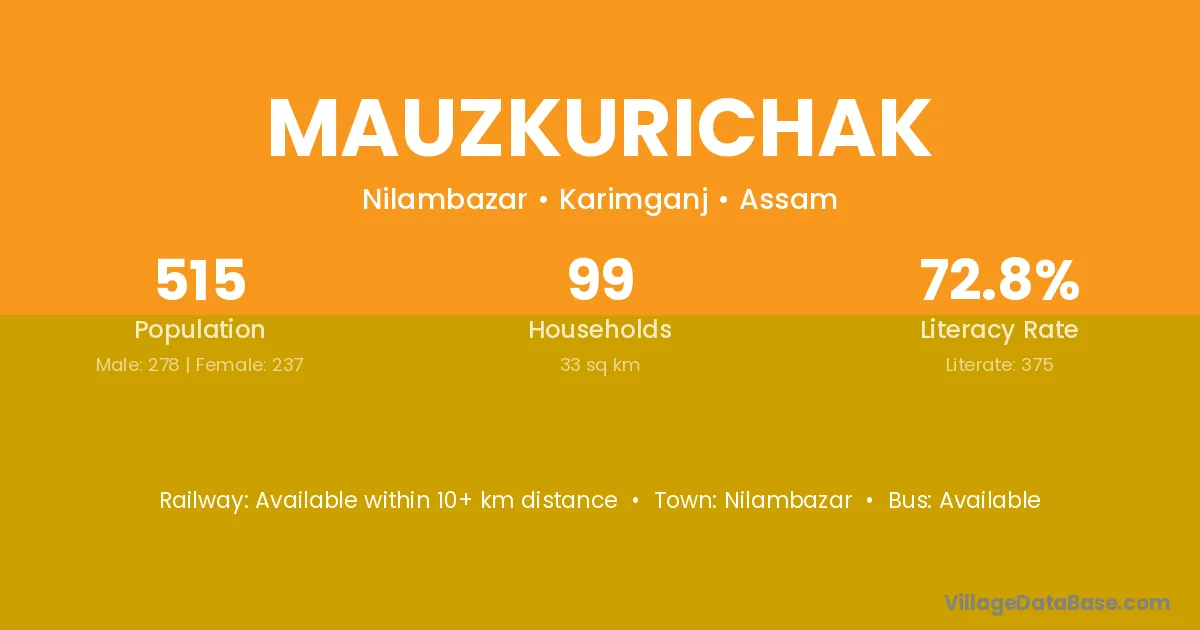 Mauzkurichak village is located in the Nilambazar Subdivision of the Karimganj district in Assam .