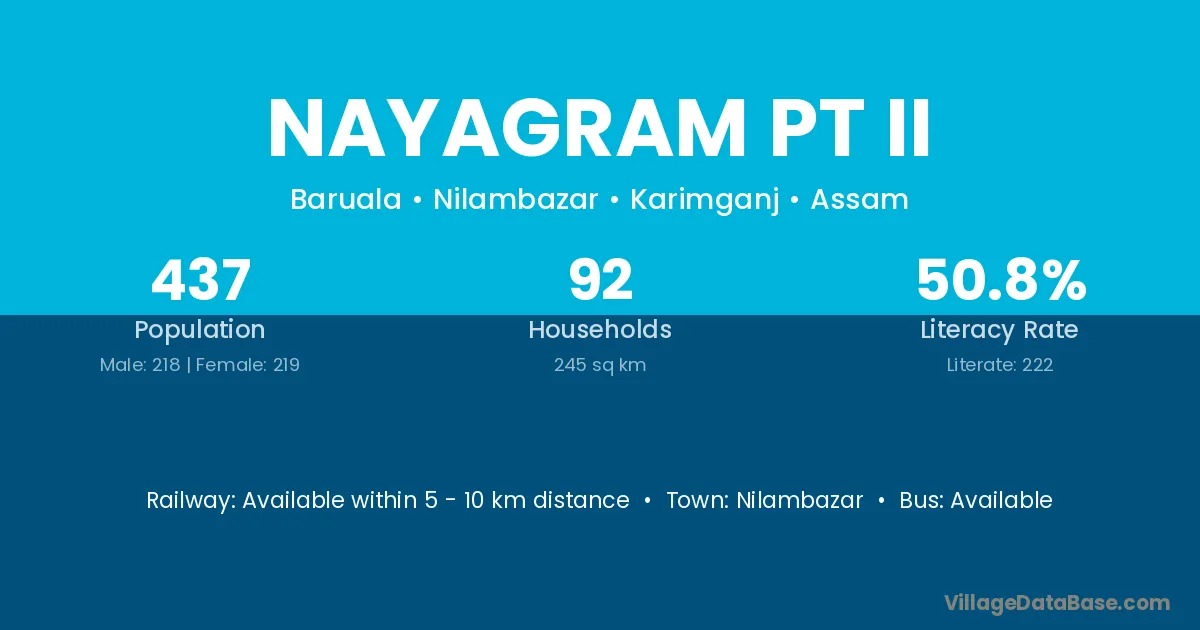 Nayagram Pt Ii village has a total population of 437 people, of which 218 are males and 219 are females.