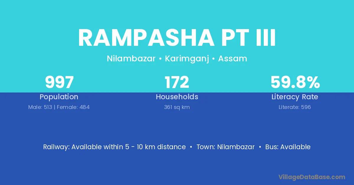 Rampasha Pt Iii village has a total population of 997 people, of which 513 are males and 484 are females.
