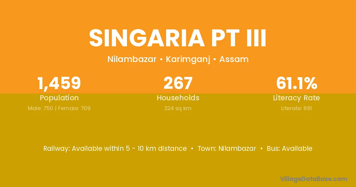 Singaria Pt Iii village has a total population of 1,459 people, of which 750 are males and 709 are females.