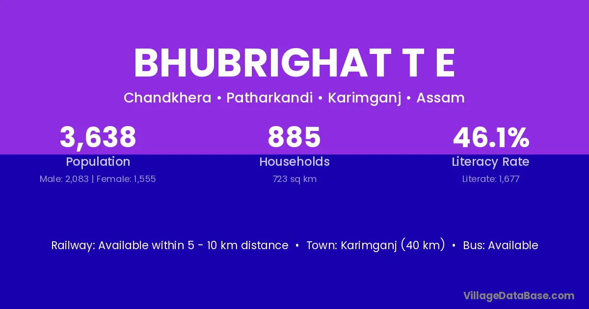 Karimganj (40 km) is the nearest town to Bhubrighat T E village for major economic activities and is located approximately 40 km away.