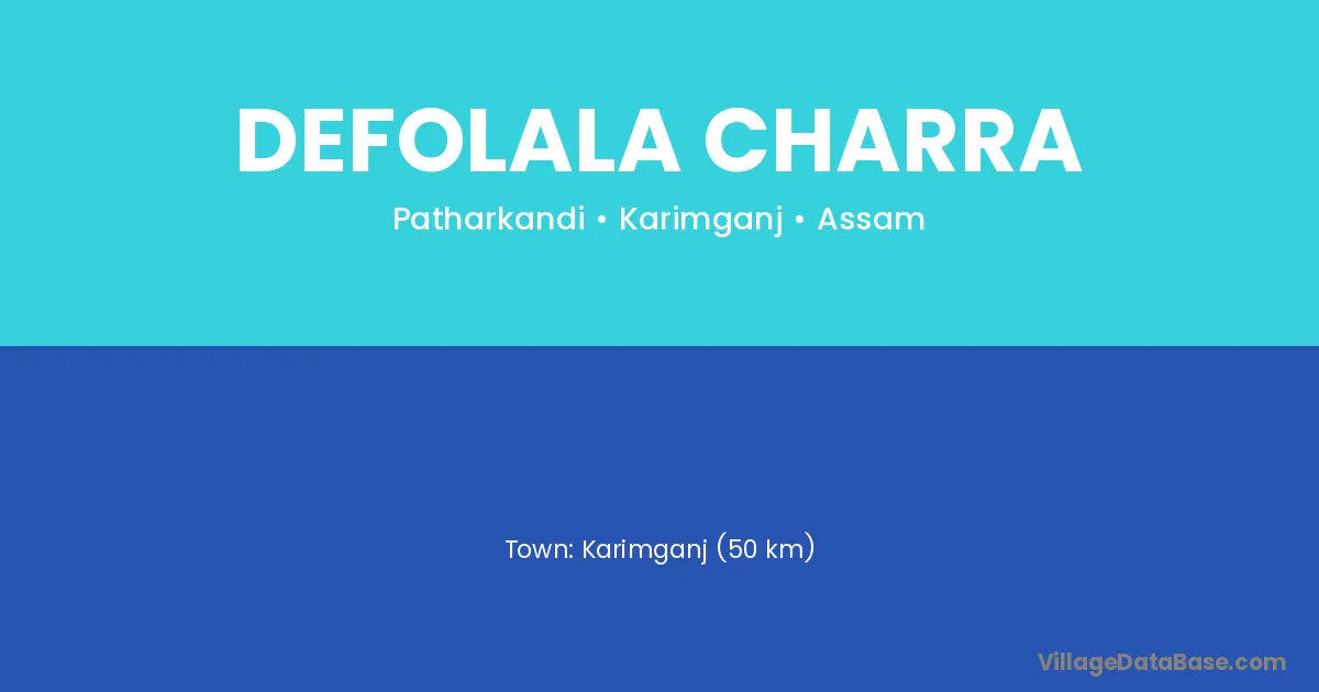 Karimganj (50 km) is the nearest town to Defolala Charra village for major economic activities and is located approximately 50 km away.