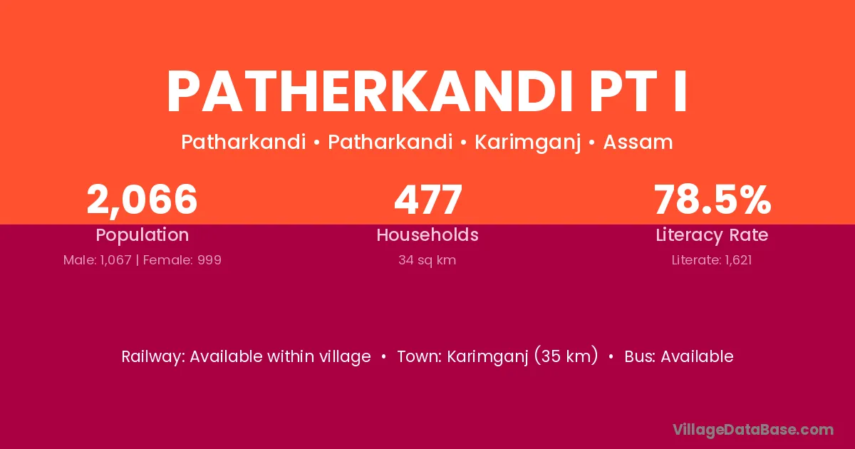 Karimganj (35 km) is the nearest town to Patherkandi Pt I village for major economic activities and is located approximately 35 km away.
