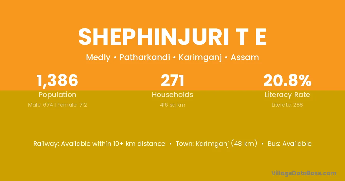 Karimganj (48 km) is the nearest town to Shephinjuri T E village for major economic activities and is located approximately 48 km away.