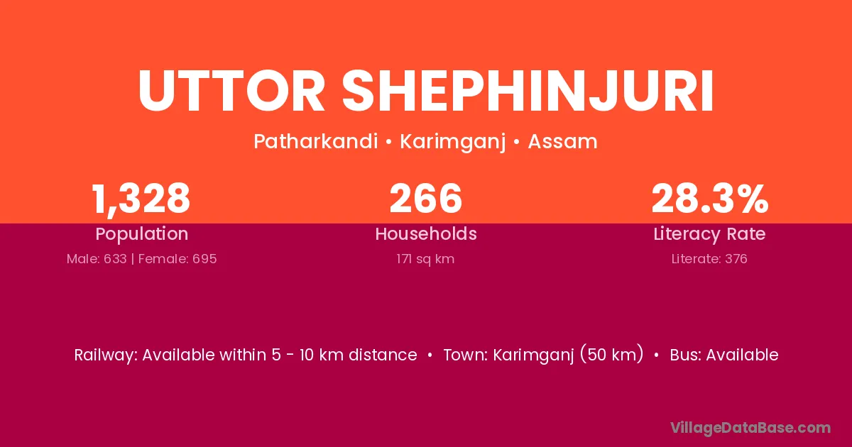 Uttor Shephinjuri village has a total population of 1,328 people, of which 633 are males and 695 are females.