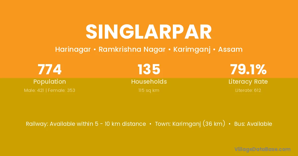 Karimganj (36 km) is the nearest town to Singlarpar village for major economic activities and is located approximately 36 km away.