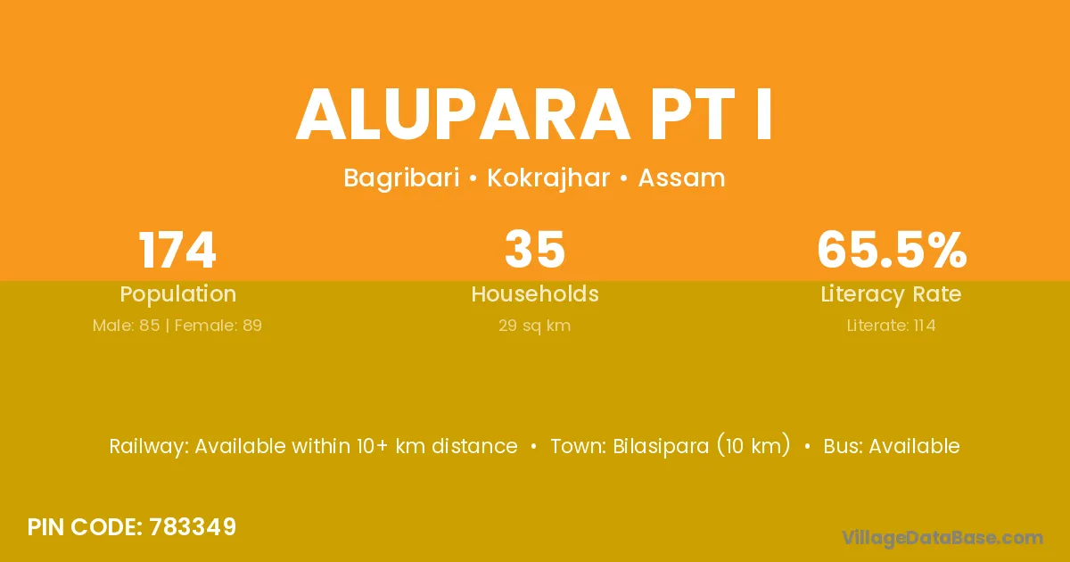 Bilasipara (10 km) is the nearest town to Alupara Pt I village for major economic activities and is located approximately 10 km away.