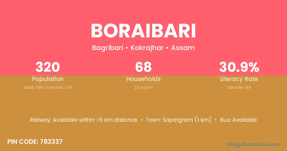 Sapatgram (1 km) is the nearest town to Boraibari village for major economic activities and is located approximately 1 km away.