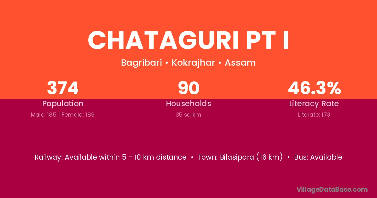 Bilasipara (16 km) is the nearest town to Chataguri Pt I village for major economic activities and is located approximately 16 km away.