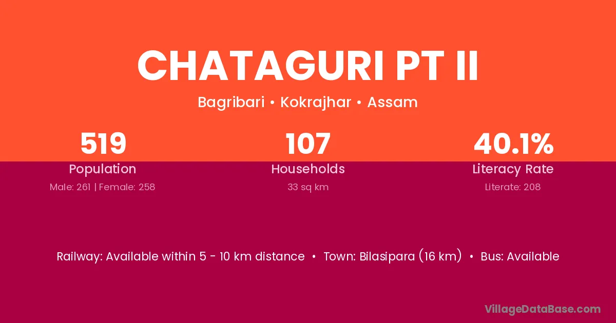 Chataguri Pt Ii village has a total population of 519 people, of which 261 are males and 258 are females.
