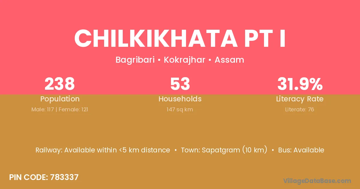 Sapatgram (10 km) is the nearest town to Chilkikhata Pt I village for major economic activities and is located approximately 10 km away.