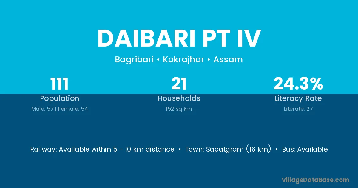 Sapatgram (16 km) is the nearest town to Daibari Pt Iv village for major economic activities and is located approximately 16 km away.