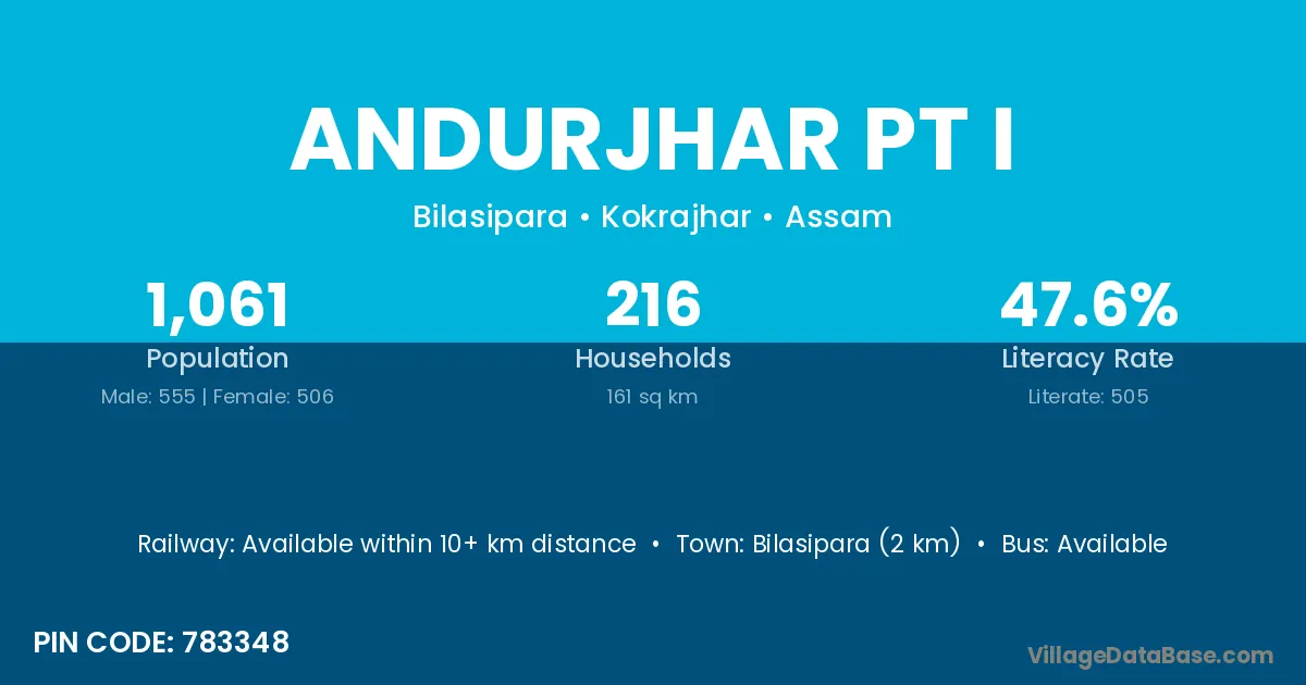 Bilasipara (2 km) is the nearest town to Andurjhar Pt I village for major economic activities and is located approximately 2 km away.