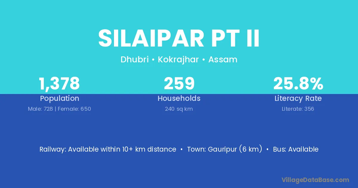 Gauripur (6 km) is the nearest town to Silaipar Pt Ii village for major economic activities and is located approximately 6 km away.