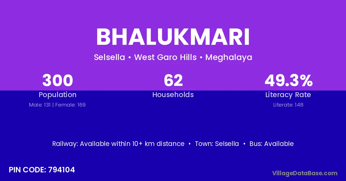 Kokrajhar (16 km) is the nearest town to Bhalukmari village for major economic activities and is located approximately 16 km away.