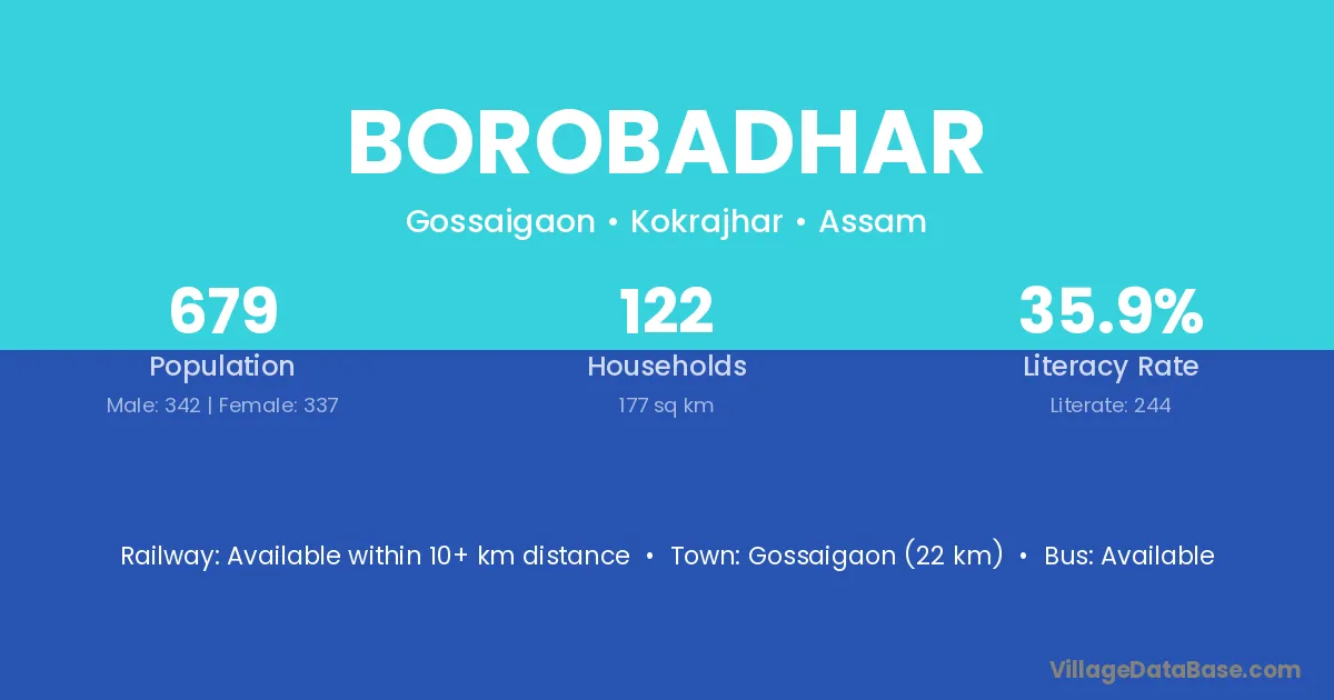 Gossaigaon (22 km) is the nearest town to Borobadhar village for major economic activities and is located approximately 22 km away.
