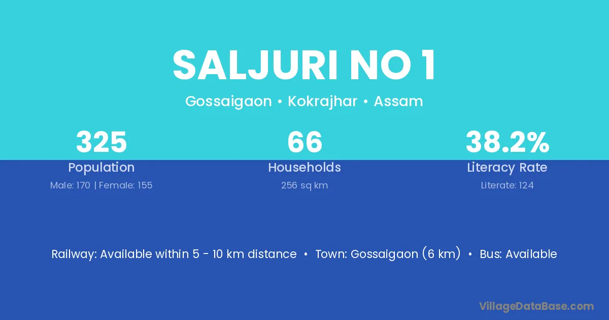 Gossaigaon (6 km) is the nearest town to Saljuri No 1 village for major economic activities and is located approximately 6 km away.