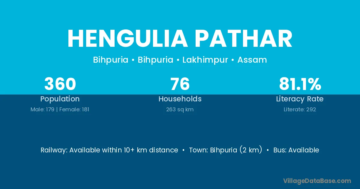 Bihpuria (2 km) is the nearest town to Hengulia Pathar village for major economic activities and is located approximately 2 km away.