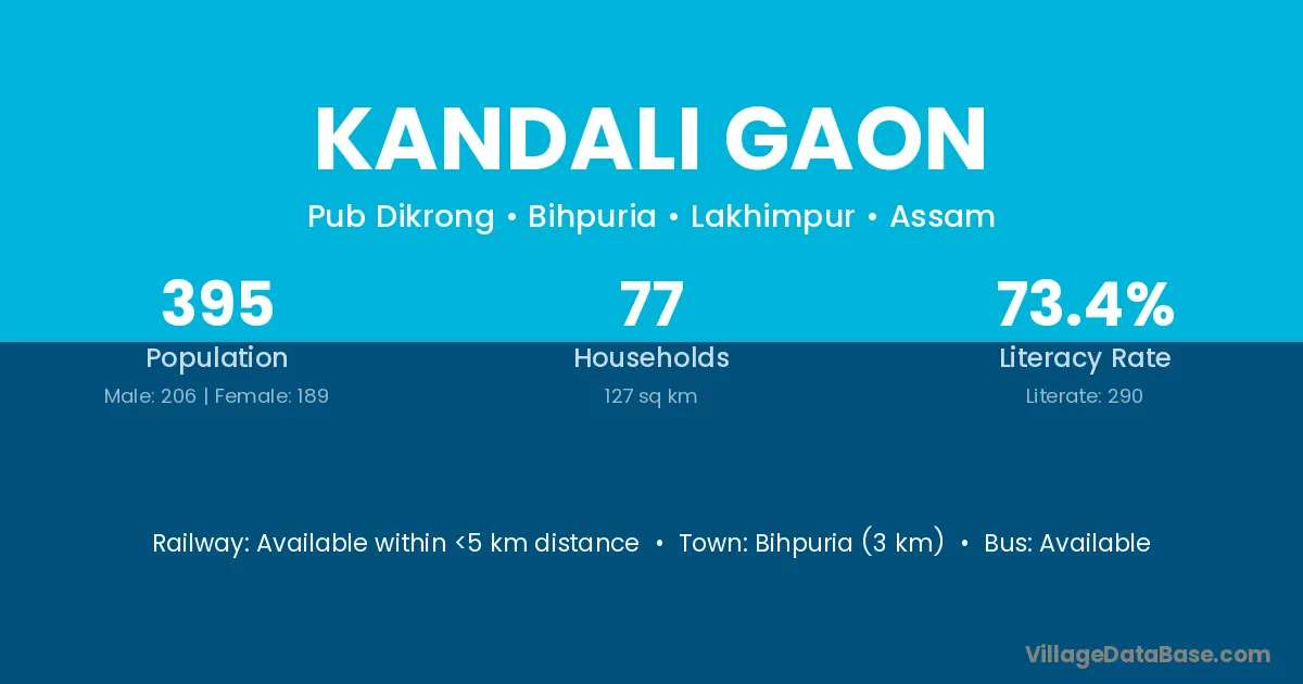 Kandali Gaon village has a total population of 395 people, of which 206 are males and 189 are females.