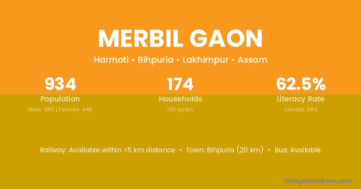 Merbil Gaon village has a total population of 934 people, of which 485 are males and 449 are females.